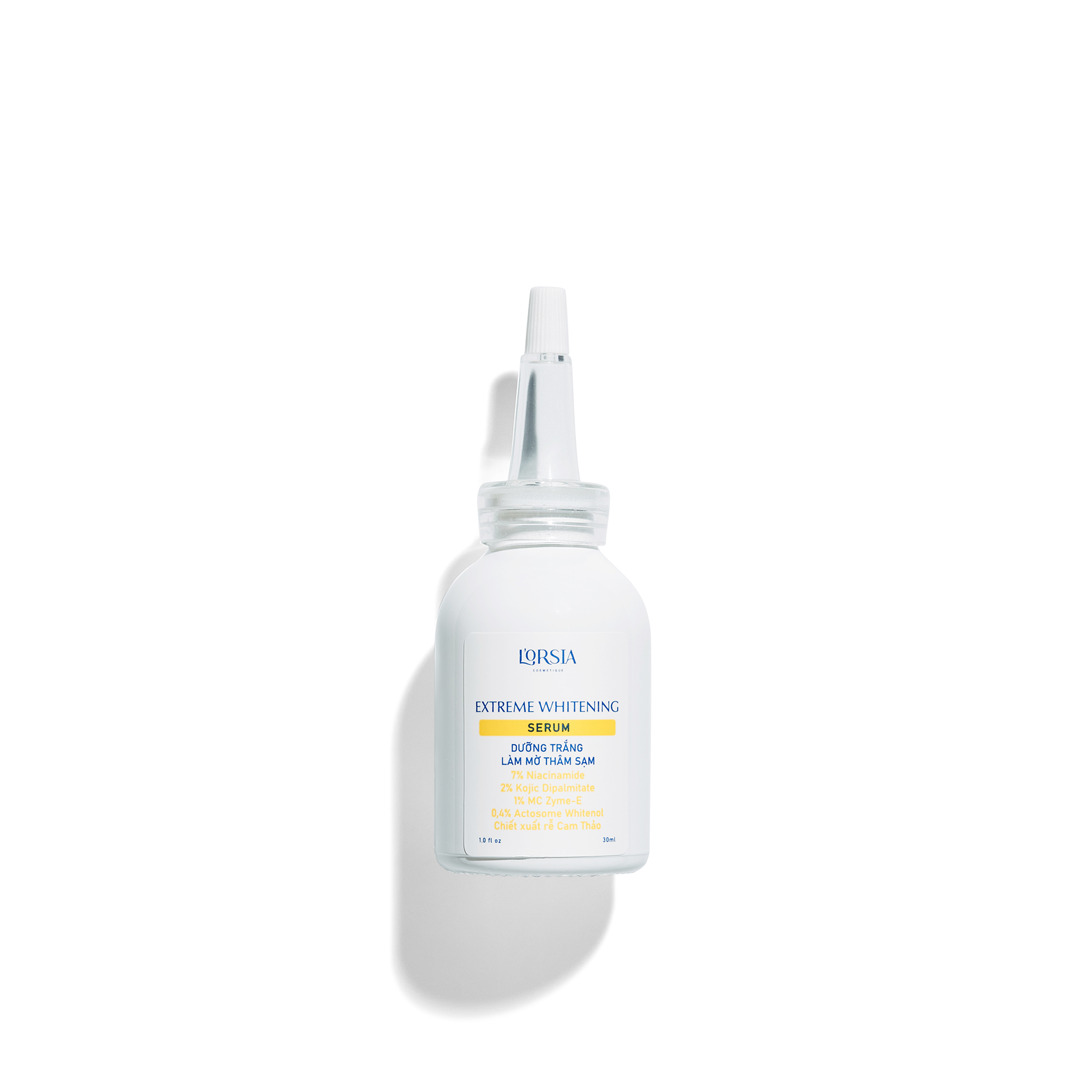 Serum dưỡng trắng, mờ thâm sạm L’orsia Actosome Whitenol 30ml được L’orsia đặc biệt thiết kế dành cho những làn da đang gặp vấn đề về tăng sắc tố. Sản phẩm chứa tổ hợp các thành phần làm trắng da vượt trội như 0,4% Actosome Whitenol, 2% Kojic Dipalmitate, được tinh chọn ở nồng độ an toàn cho cả da nhạy cảm. Đồng thời chứa các thành phần kháng viêm và ổn định hàng rào bảo vệ da như 7% Niacinamide và Chiết xuất cam thảo, giúp hạn chế tối đa nguy cơ gây châm chích da.