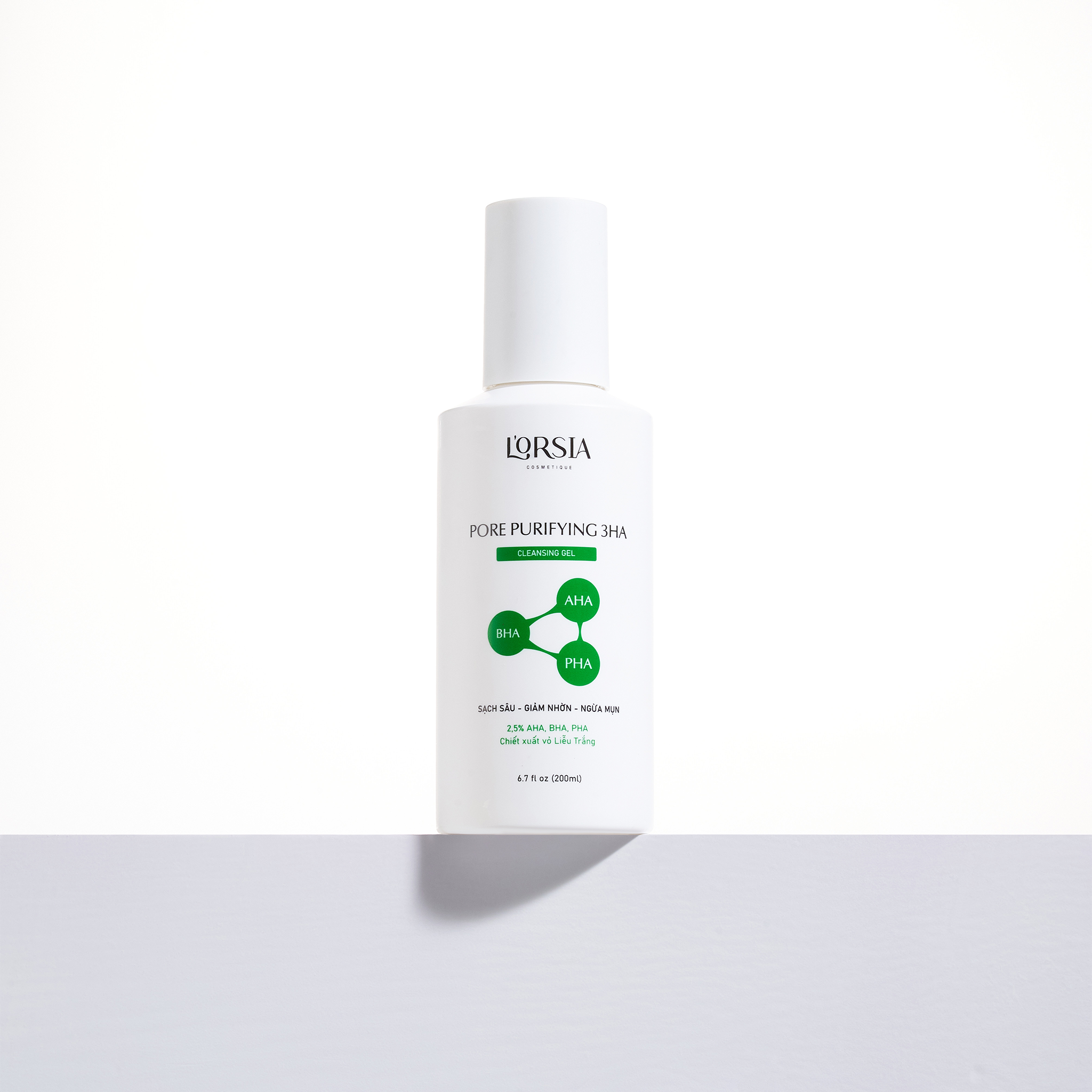 Sữa rửa mặt sạch sâu, giảm nhờn, ngừa mụn L’orsia 3HA (AHA – BHA – PHA) là sản phẩm L’orsia thiết kế đặc biệt dành riêng cho da dầu mụn, da dầu dễ sinh mụn, da dày sừng, có lỗ chân lông to. Sản phẩm có độ pH lý tưởng là 4.5, giúp hỗn hợp 3 axit trong sữa rửa mặt vẫn đạt được hiệu quả và không gây tổn hại đến da. Sữa rửa mặt cho công dụng làm sạch từ sâu trong lỗ chân lông đến trên bề mặt da nhờ các acid amin chiế́t xuấ́t từ táo, tạo lớp bọt xố́p mịn, len lỏi vào sâu trong lỗ̃ chân lông, làm sạch bụi bẩn, bã nhờn dư thừa. Ngoài ra, sự tích hợp bộ 3HA: AHA, BHA, PHA giúp da dầu tẩy da chết nhẹ nhàng và hỗ trợ kiểm soát dầu thừa hiệu quả, giúp da luôn sạch thoáng, không bóng nhờn.